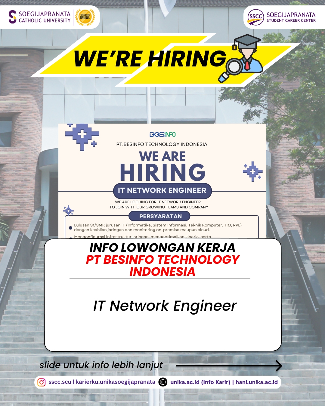 News SSCC SCU Bagikan Praktik Baik dalam Pengelolaan Pusat Karier di Universitas Bhamada Slawi Read More » 03/02/2026