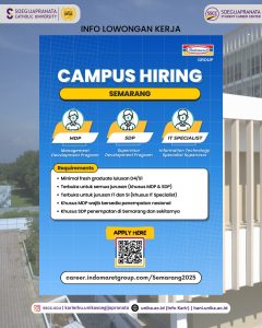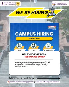 Indomaret Group sedang mencari profesional muda yang siap berinovasi dan berkolaborasi. Jangan lewatkan kesempatan ini! Info lebih lanjut kunjungi http://hani.unika.ac.id dan klik menu “Jobs” untuk melihat info secara lebih jelas.
