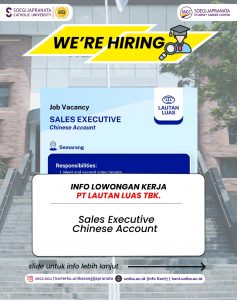 PT Lautan Luas Tbk. sedang mencari profesional muda yang siap berinovasi dan berkolaborasi. Jangan lewatkan kesempatan ini! Info lebih lanjut kunjungi hani.unika.ac.id dan klik menu “Jobs” untuk melihat info secara lebih jelas