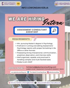 PT The Jakarta Consulting Group sedang mencari profesional muda yang siap berinovasi dan berkolaborasi. Jangan lewatkan kesempatan ini! Info lebih lanjut kunjungi hani.unika.ac.id dan klik menu “Jobs” untuk melihat info secara lebih jelas.