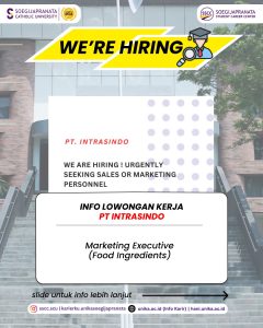 PT Intrasindo sedang mencari profesional muda yang siap berinovasi dan berkolaborasi. Jangan lewatkan kesempatan ini! Info lebih lanjut kunjungi hani.unika.ac.id dan klik menu “Jobs” untuk melihat info secara lebih jelas.