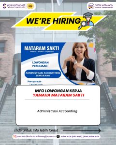 Yamaha Mataram Sakti sedang mencari profesional muda yang siap berinovasi dan berkolaborasi. Jangan lewatkan kesempatan ini! Info lebih lanjut kunjungi hani.unika.ac.id dan klik menu “Jobs” untuk melihat info secara lebih jelas.