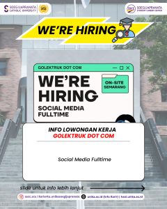 GolekTruk Dot Com sedang mencari profesional muda yang siap berinovasi dan berkolaborasi. Jangan lewatkan kesempatan ini! Info lebih lanjut kunjungi http://hani.unika.ac.id dan klik menu “Jobs” untuk melihat info secara lebih jelas