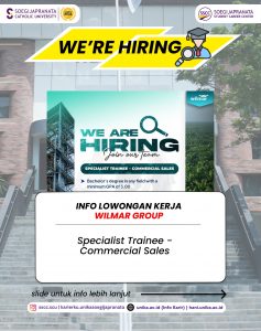 Wilmar Group sedang mencari profesional muda yang siap berinovasi dan berkolaborasi. Jangan lewatkan kesempatan ini! Info lebih lanjut kunjungi hani.unika.ac.id dan klik menu “Jobs” untuk melihat info secara lebih jelas