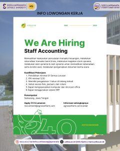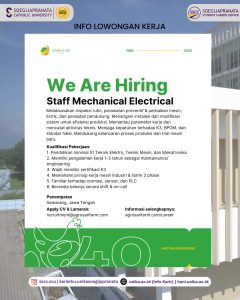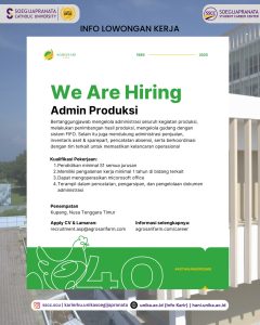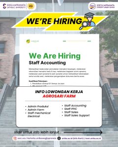 Agrosari Farm sedang mencari profesional muda yang siap berinovasi dan berkolaborasi. Jangan lewatkan kesempatan ini! Info lebih lanjut kunjungi http://hani.unika.ac.id dan klik menu “Jobs” untuk melihat info secara lebih jelas.