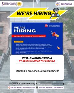 PT Berca Hardayaperkasa sedang mencari profesional muda yang siap berinovasi dan berkolaborasi. Jangan lewatkan kesempatan ini! Info lebih lanjut kunjungi http://hani.unika.ac.id dan klik menu “Jobs” untuk melihat info secara lebih jelas.