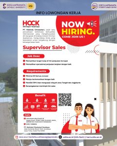 PT. Hokinda Citralestari sedang mencari profesional muda yang siap berinovasi dan berkolaborasi. Jangan lewatkan kesempatan ini! Info lebih lanjut kunjungi http://hani.unika.ac.id dan klik menu “Jobs” untuk melihat info secara lebih jelas.