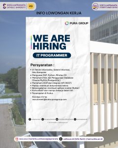 Pura Group sedang mencari profesional muda yang siap berinovasi dan berkolaborasi. Jangan lewatkan kesempatan ini! Info lebih lanjut kunjungi hani.unika.ac.id dan klik menu “Jobs” untuk melihat info secara lebih jelas.