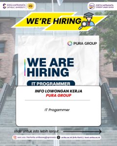 Pura Group sedang mencari profesional muda yang siap berinovasi dan berkolaborasi. Jangan lewatkan kesempatan ini! Info lebih lanjut kunjungi hani.unika.ac.id dan klik menu “Jobs” untuk melihat info secara lebih jelas.