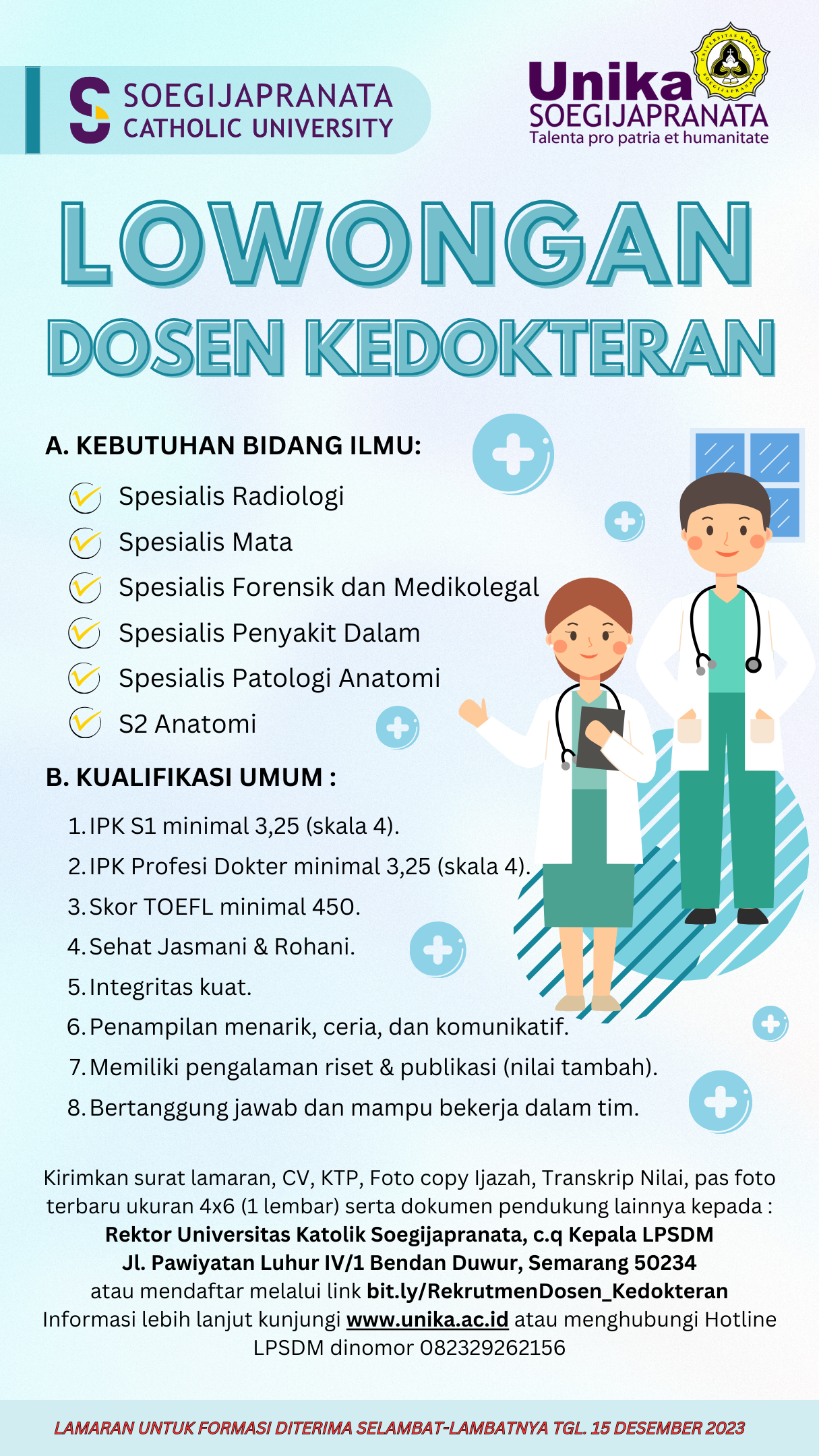 Lowongan Dosen Kedokteran Soegijapranata Catholic University