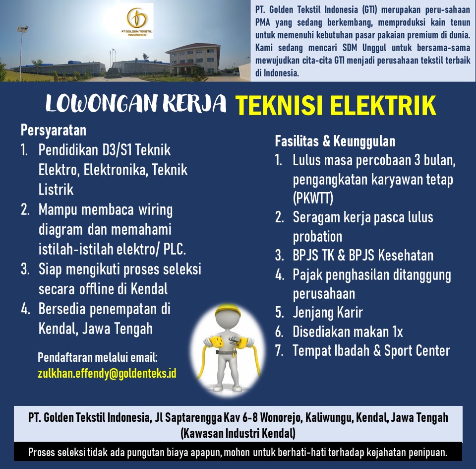 Lowongan Kerja Maret 2024 – PT. GOLDEN TEKSTIL INDONESIA – TEKNISI ELEKTRIK