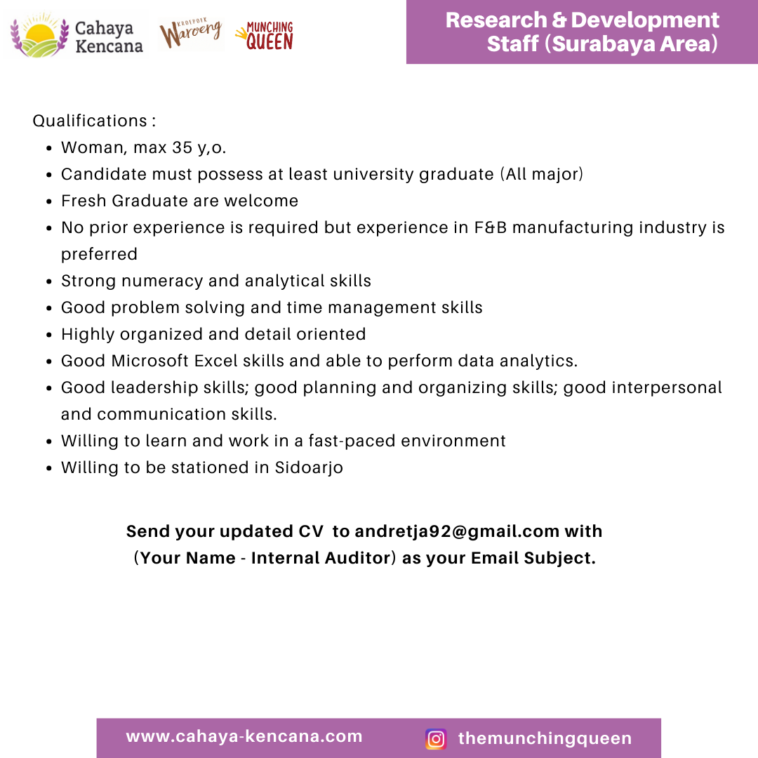 Lowongan Kerja Mei 2024 – CAHAYA KENCANA – Research & Development Staff