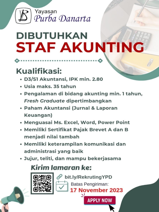 Lowongan Kerja Oktober 2023 – Purba Danarta – Accounting