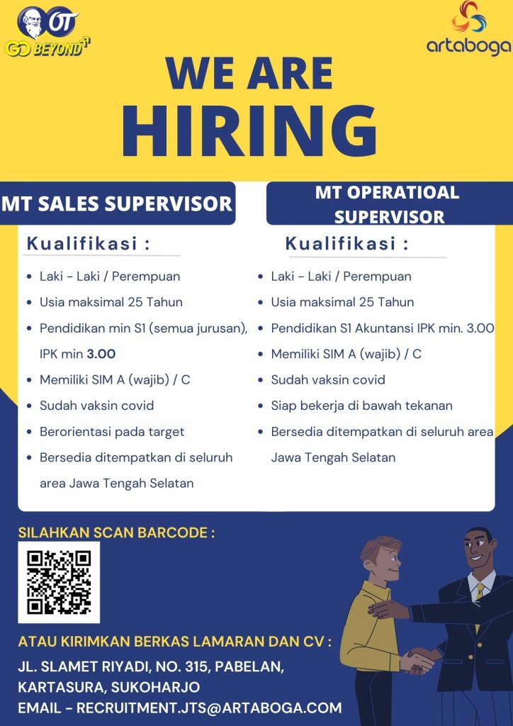 MT Sales Supervisor, MT Operasional Supervisor @ Artaboga