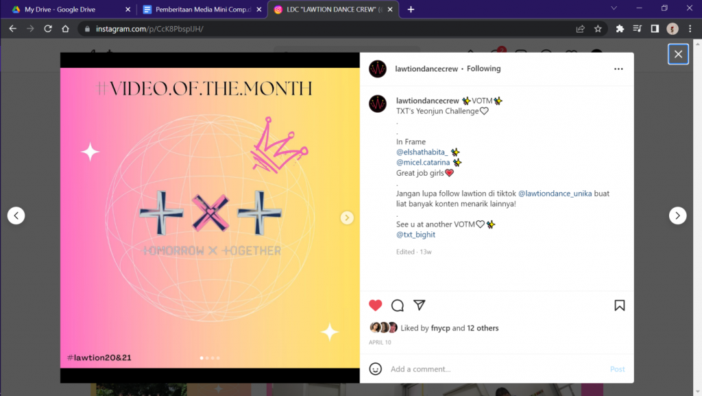 Gambar 1. Tangkapan Layar Post Instagram Lawtion Dance