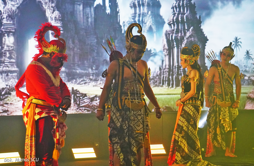 Mengangkat tema “Balada Ramayana,” sebanyak 15 mahasiswa SCU yang tergabung dalam UKM Seni Kembangtaru dan Pra-UKM Teater Anting menampilkan kisah “Ramayana.” Uniknya, pentas seni ini dikemas dalam balutan drama Bahasa Inggris.