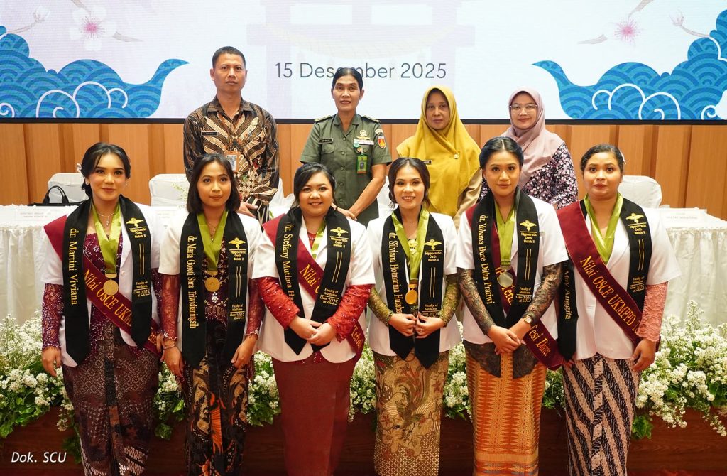 Fakultas Kedokteran (FK) Soegijapranata Catholic University (SCU) menggelar Pengambil Sumpah Profesi Dokter pada Senin, 15 Desember 2025 di Teater Fransiskus Asisi, Kampus 2 SCU BSB. Sebanyak 6 lulusan FK SCU telah resmi menyandang gelar profesi sebagai dokter. Mereka telah melakukan pengambilan sumpah profesi dokter bersama Dekan FK SCU, dr. Edward Hartono, MARS, disaksikan jajaran rektorat, dekanat, serta para dosen dan tenaga kependidikan FK SCU.