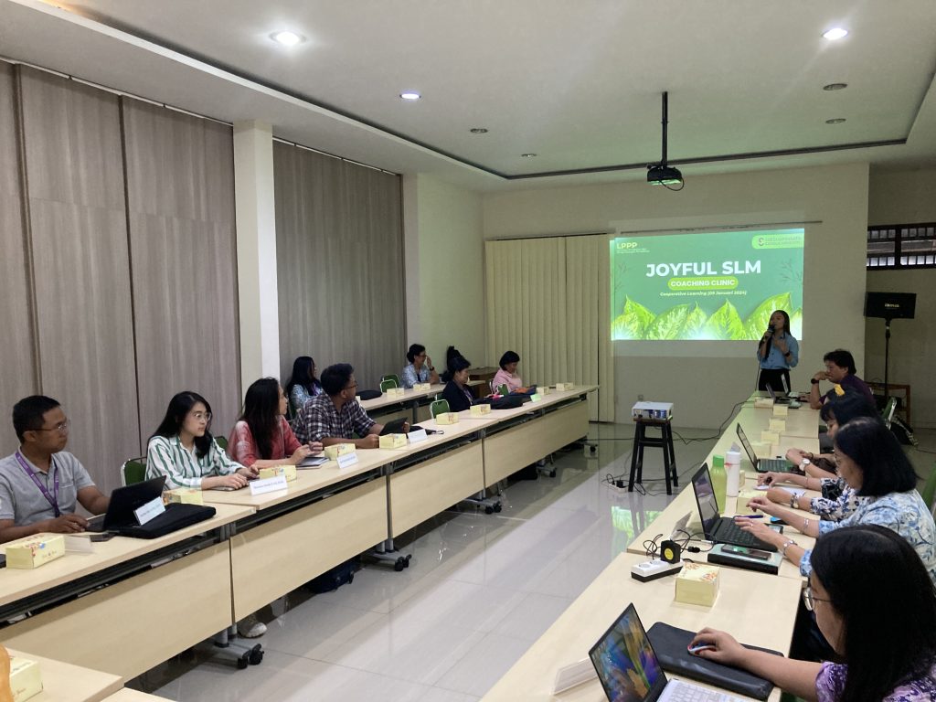 Beliau hadir di tengah 16 dosen SCU dalam Joyful SLM Coaching Clinic (SCC). Kegiatan ini diselenggarakan LP3 SCU pada Selasa, 9 Januari 2024 di Gedung Mikael, Kampus 1 SCU Bendan. Lewat LP3, SCU berupaya mempertajam kemampuan dosennya dalam menerapkan Cooperative Learning