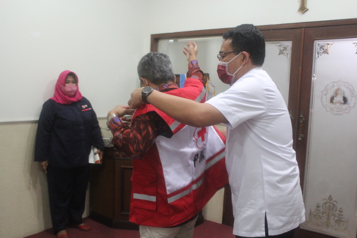 Dalam kunjungan tersebut, Ketua PMI Kota Semarang juga berkesempatan mengenakan jaket PMI secara simbolis sebagai penanda diangkatnya Dr Ferdinand Hindiarto sebagai anggota Dewan Kehormatan PMI Kota Semarang. (FAS)