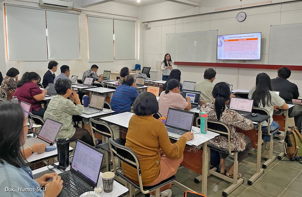 Kepala LPM SCU, Stefani Lily Indarto, S.E., M.M., Ak., CA., CPA., ASEAN CPA, menilai pentingnya pelatihan ini dalam implementasi SPMI yang rutin dilaksanakan setiap tahun. “Pelatihan ini merupakan rangkaian pelaksanaan AMI. Sebelum audit dilaksanakan, para auditor perlu di-refresh sekaligus dilakukan penjaringan calon auditor baru, terutama dari GPM (Gugus Penjaminan Mutu),” ujarnya. Menurutnya, calon auditor perlu diberikan pemahaman utuh mengenai kebijakan SPMI, standar mutu, mekanisme PPEPP, serta teknik audit, mengingat pentingnya AMI dalam menilai efektivitas implementasi SPMI.