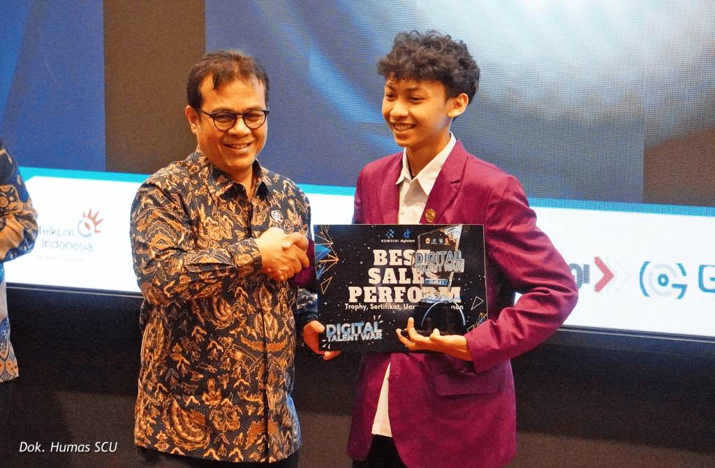 Tim mahasiswa Program Studi Sistem Informasi (SI) Soegijapranata Catholic University (SCU) berhasil memenangkan penghargaan Best Sales Performa Digital Talent War yang diselenggarakan Badan Pengembangan Sumber Daya Manusia (BPSDM) Komunikasi dan Digital (Komdigi) DIY, Kemenkomdigi. Penghargaan tersebut diserahkan langsung oleh Wamen Komdigi, Nezar Patria kepada Koordinator Tim, Dimas Rizky Fajar Pamungkas, pada Awarding Digital Talent War di Teater Thomas Aquinas, Kampus 1 SCU Bendan, Kamis (13/11).