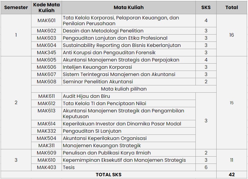 Program Studi Magister Akuntansi Fakultas Ekonomi dan Bisnis (FEB) Unika Soegijapranata sebagai salah satu perguruan tinggi pencetak lulusan bidang akuntansi, senantiasa berupaya memberikan pelayanan terbaik untuk memenuhi tuntutan ini. Program Studi Magister Akuntansi telah ter-Akreditasi Unggul oleh LAMEMBA. Magister Akuntansi berupaya menyediakan pilihan bagi masyarakat yang hendak meningkatkan kompetensi dan kualifikasi profesional dalam bidang akuntansi, melalui jenjang studi magister (S2) akuntansi terapan yang kami tawarkan melalui Program Magister Akuntansi (MAKSI) FEB Unika Soegijapranata. Di samping itu, MAKSI FEB memiliki program Reguler, Rekognisi Pembelajaran Lampau (RPL), Fast Track (S1 Akuntansi yang sedang mengambil Skripsi), dan Dual Degree (M.Ak., MBA).