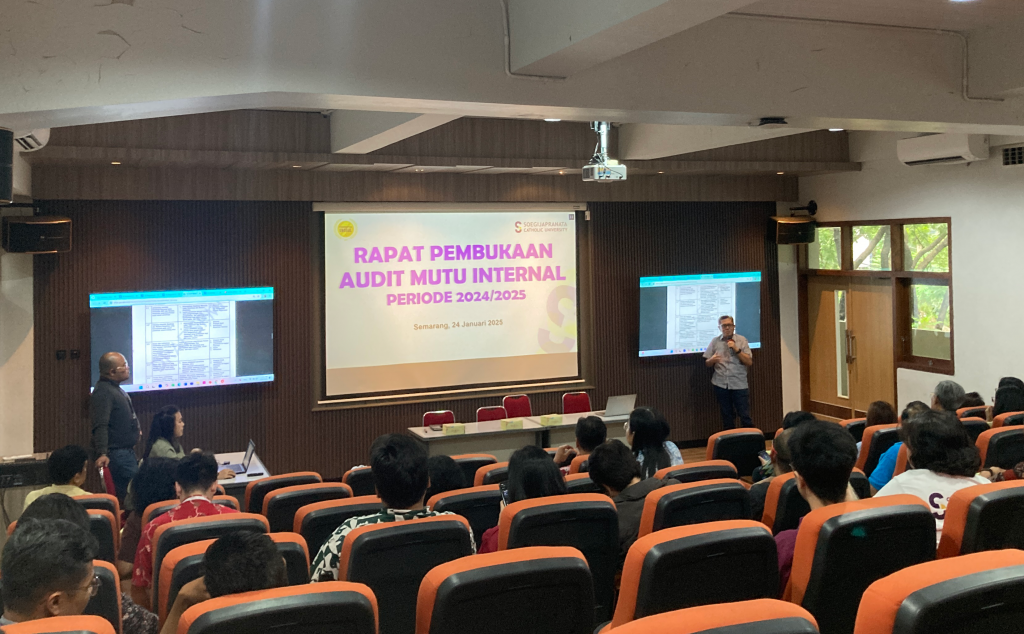 Lembaga Penjaminan Mutu (LPM) Soegijapranata Catholic University (SCU) menyelenggarakan Rapat Pembukaan Audit Mutu Internal (AMI) di Gedung Albertus, Kampus 1 SCU Bendan pada Jumat, 24 Januari 2025. Kegiatan ini diikuti oleh sejumlah perwakilan program studi dan fakutas, termasuk Dekan, Ketua dan Sekretaris Program Studi, Gugus Penjaminan Mutu (GPM), serta Auditor Mutu Internal. Mereka dipersiapkan untuk… Continue reading Hidupi Budaya Penjaminan Mutu, LPM SCU Buka Rangkaian Audit Mutu Internal