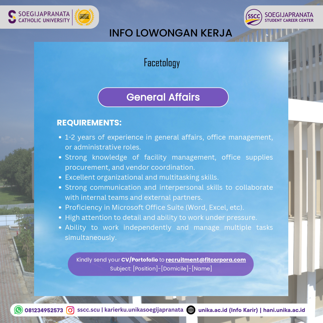 Hai Soegija Muda! Lotussan Stationery sedang mencari profesional muda yang siap berinovasi dan berkolaborasi. Jangan lewatkan kesempatan ini! Info lebih lanjut kunjungi hani.unika.ac.id dan klik menu “Jobs” untuk melihat info secara lebih jelas.  Lotussan Stationery adalah perusahaan distribusi yang menjual berbagai macam Alat Tulis Kantor (ATK) dan perlengkapan kantor di Indonesia. Kami menyediakan produk-produk seperti… Continue reading Loker Desember 2024 – Lotussan Stationery || HRD & General Affair