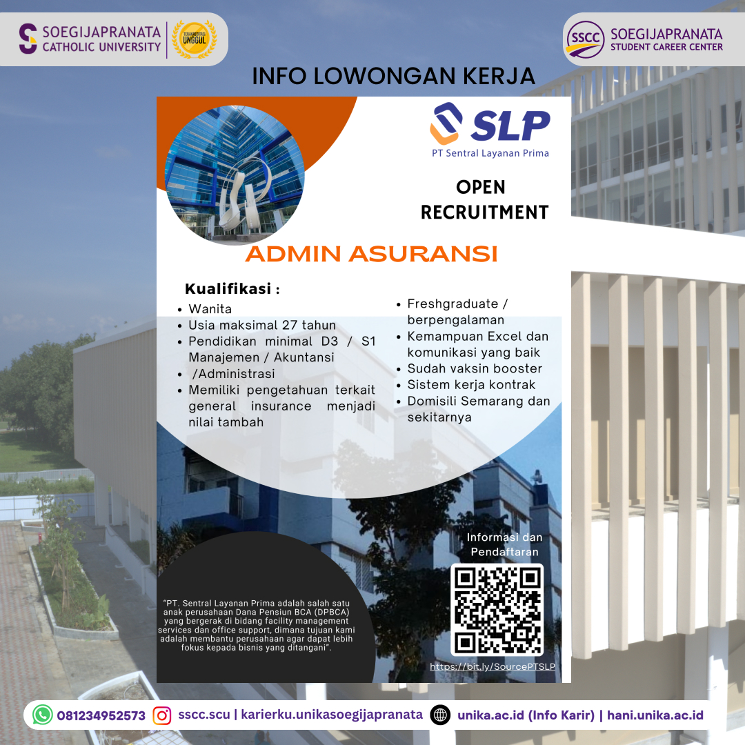 PT Sentral layanan Prima adalah salah satu anak perusahaan Dana Pensiun BCA (DPBCA). Didirikan pada tanggal 26 April 2012 yang bergerak di bidang facility management services dan office support, dimana tujuan kami adalah membantu perusahaan agar dapat lebih fokus kepada bisnis yang ditanganinya. Adapun visi dan misi dari PT Sentral layanan Prima adalah sebagai berikut:… Continue reading Loker Oktober 2024 – PT Sentral Layanan Prima || Admin Asuransi